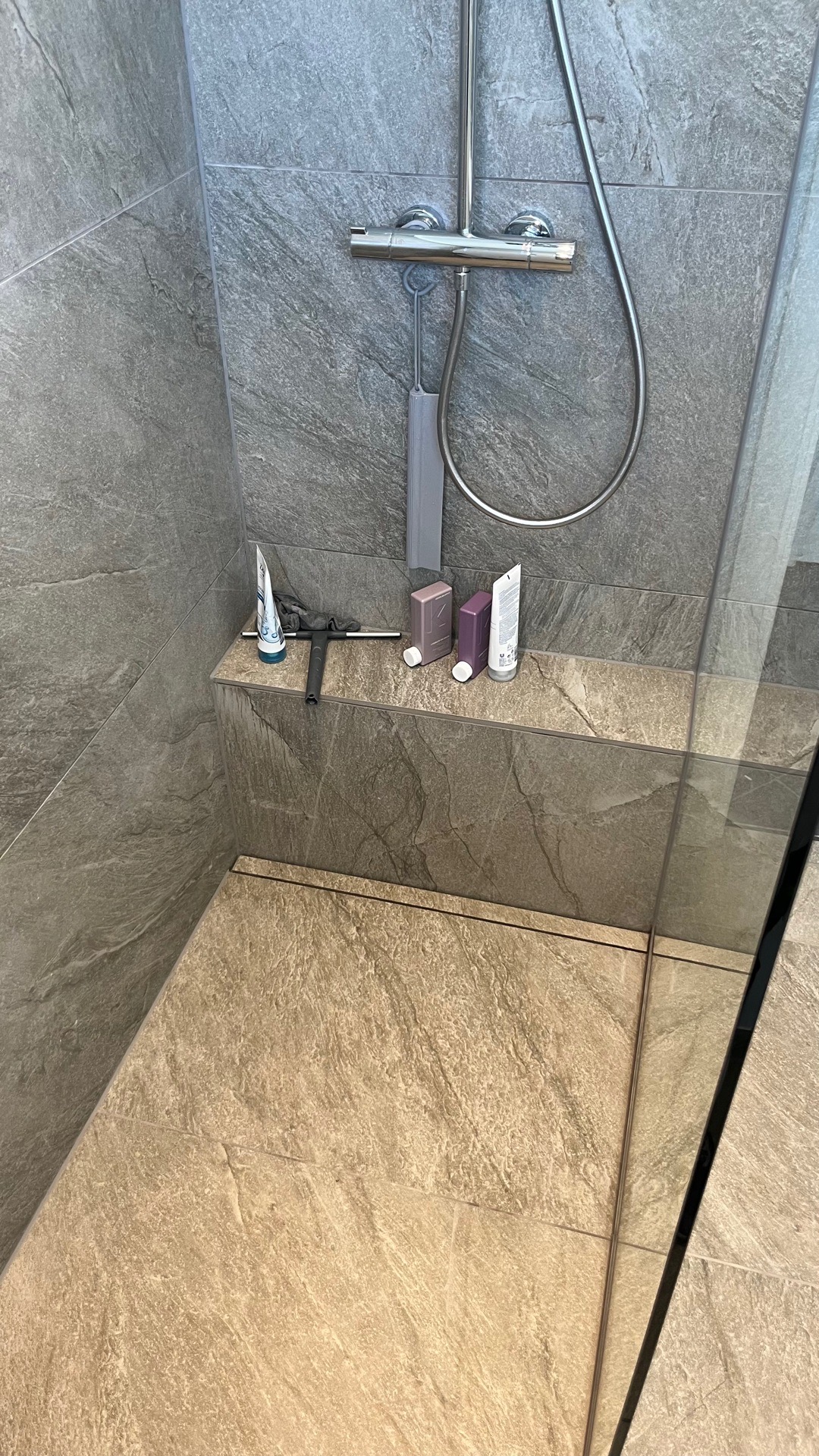 nyt opført badeværelse med smukke fliser